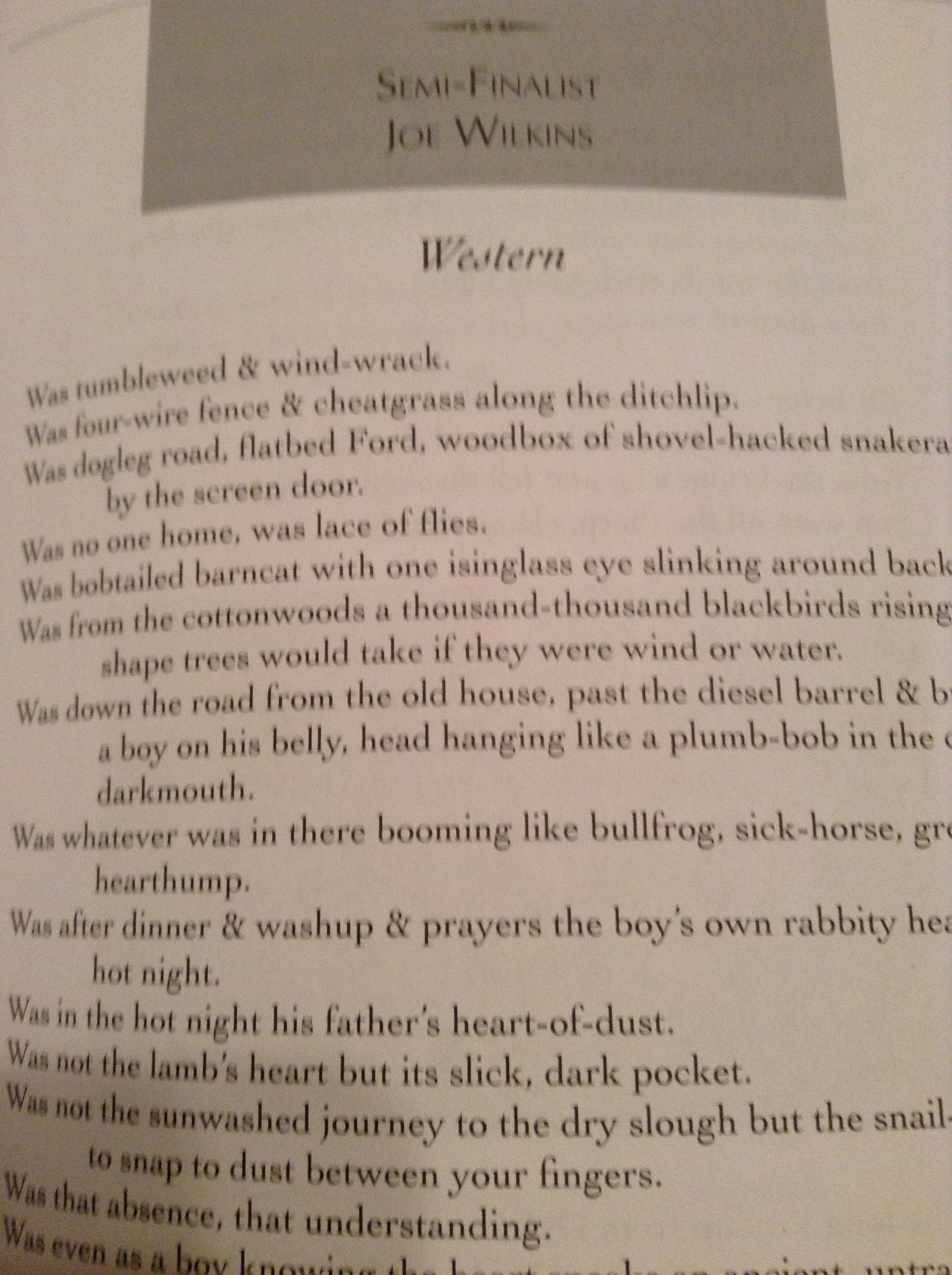 Pleased to have a couple of poems, “Western” and “‘Where Was I Before I Was Born?’,” in the latest issue of Nimrod, a journal I’ve long admired. Good stuff in here from Eric Trethewey, Christopher Buckley, Don Judson, Kathleen Kirk, and Neruda Prize winner Mary-Alice Daniel.